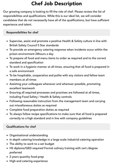 | Title | Job Description Example Chef |
