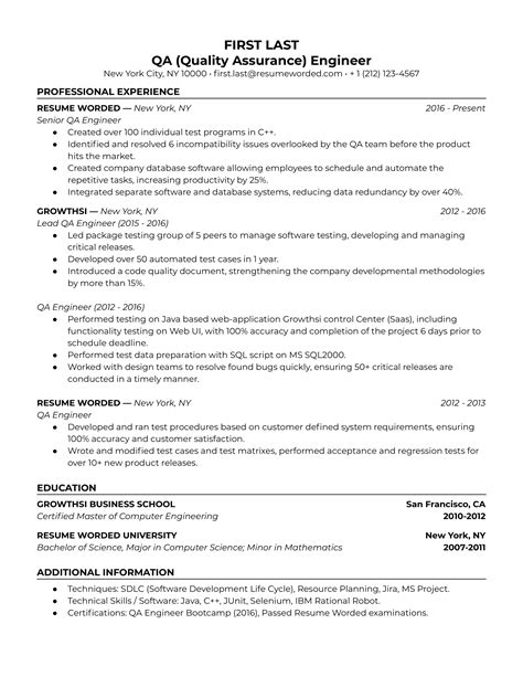 | Title | QA Engineer Resume Example | Kickresume |