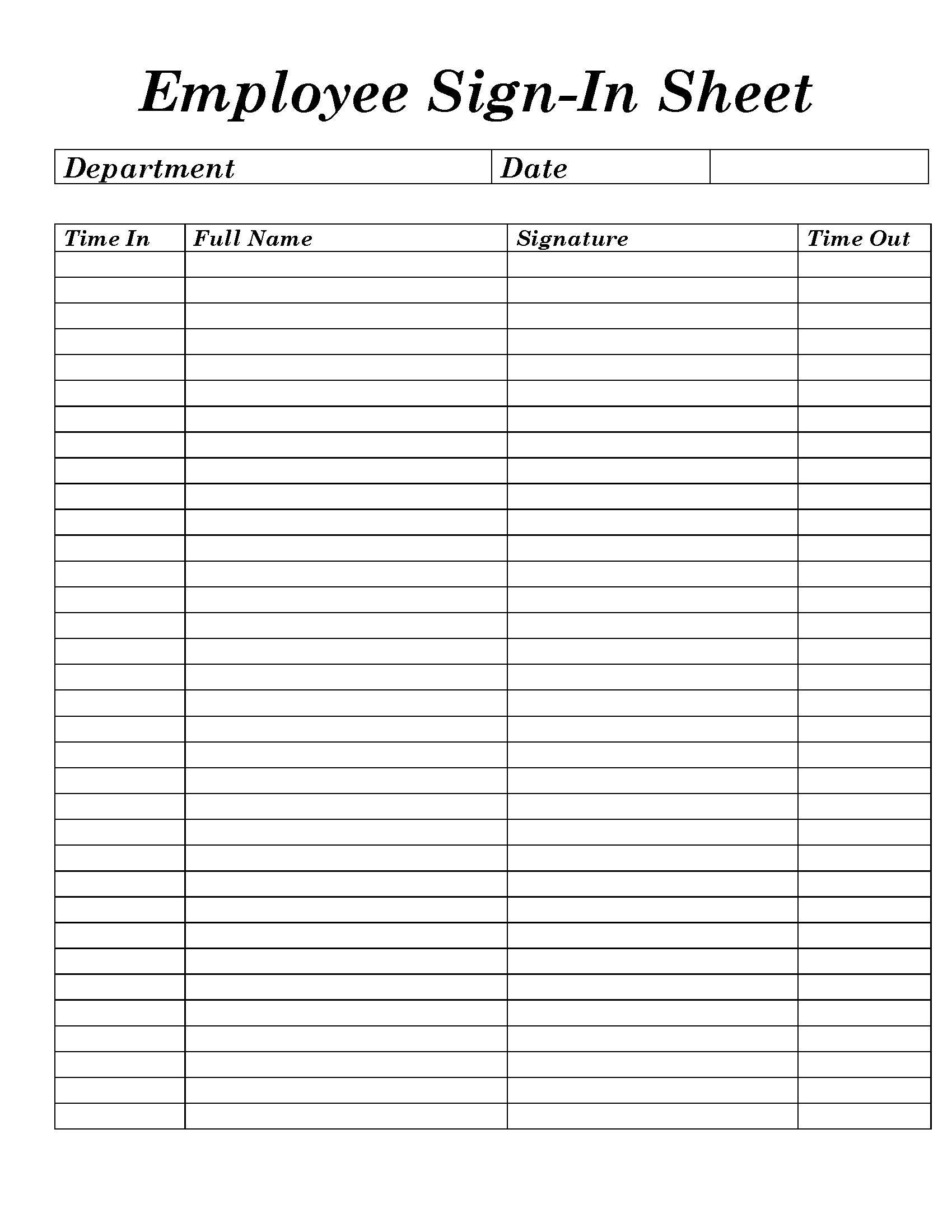 | Title | Printable Sign In Sheet |