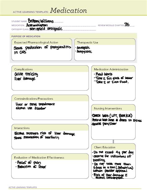 | Title | Medication blank acetaminophen - ACTIVE LEARNING TEMPLATES Medication STUDENT NAME - Studocu |